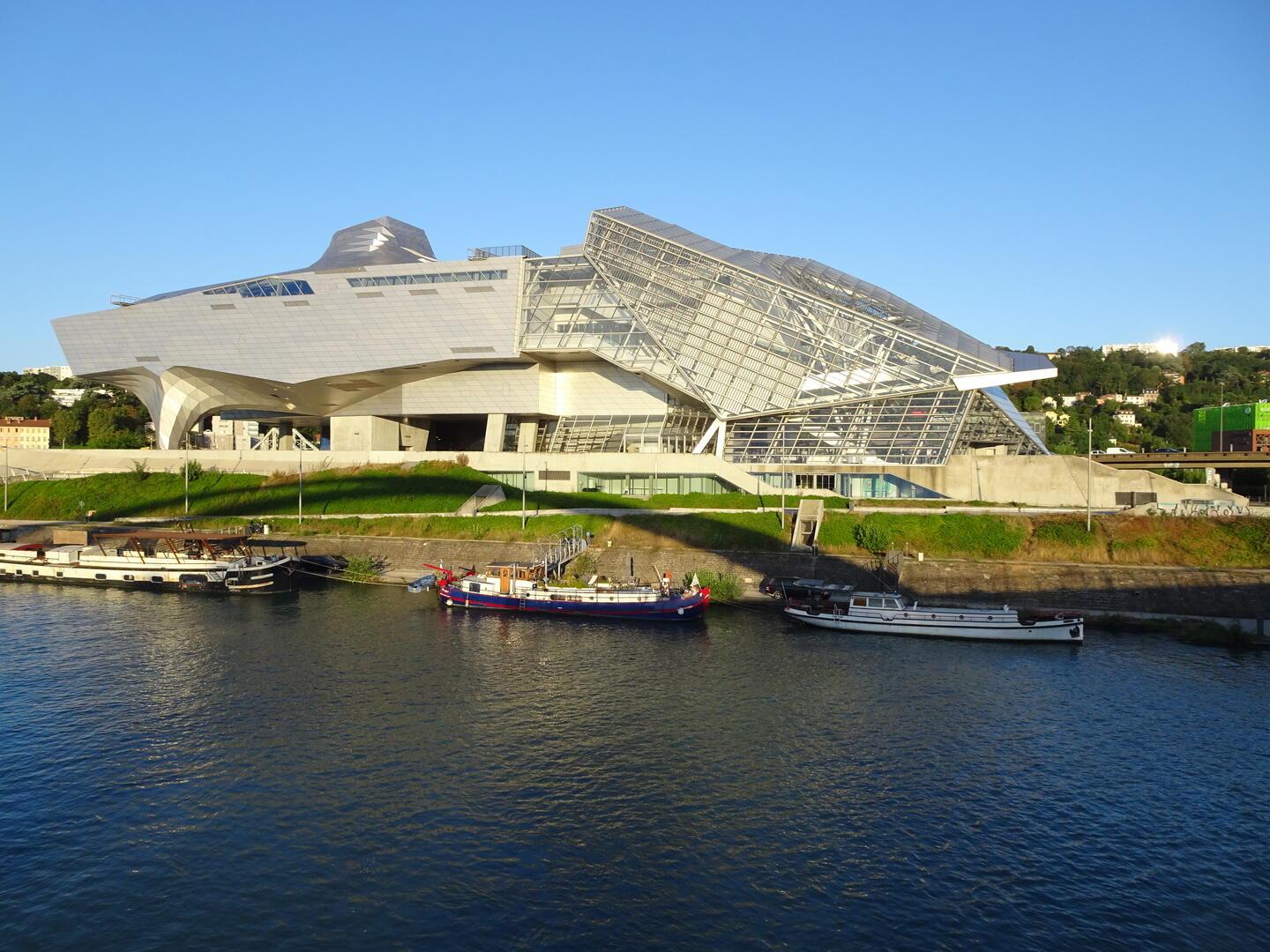 Blick rhôneabwärts. Hier trennt noch die Halbinsel mit dem Musée des Confluences die Rhône von der Saône Wo?Nach Rechtsklick