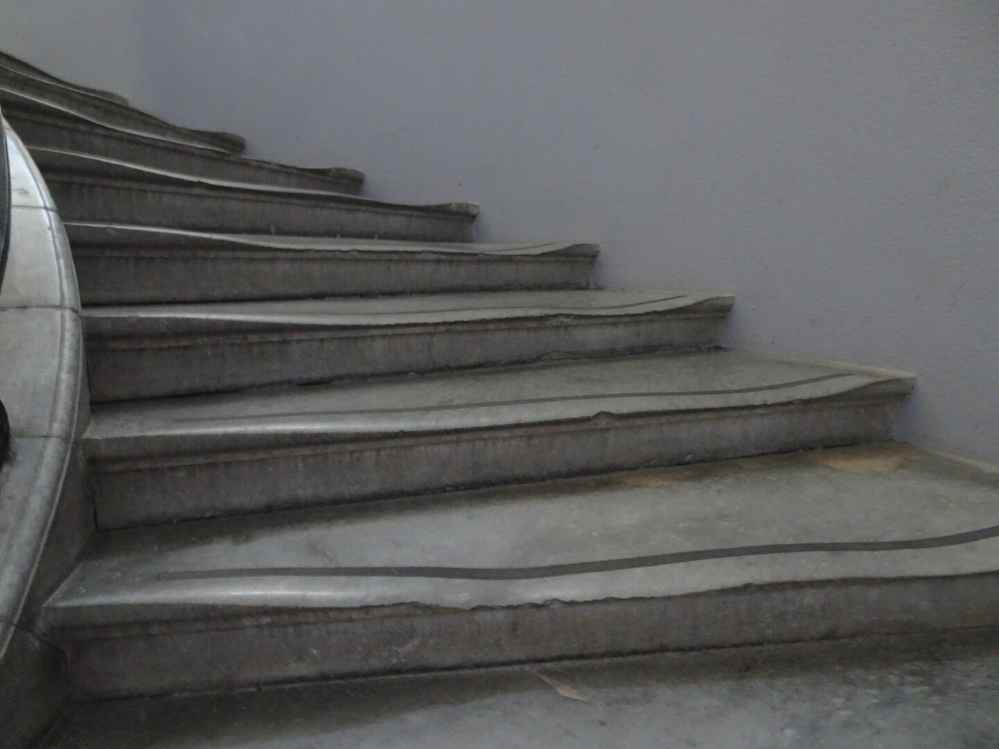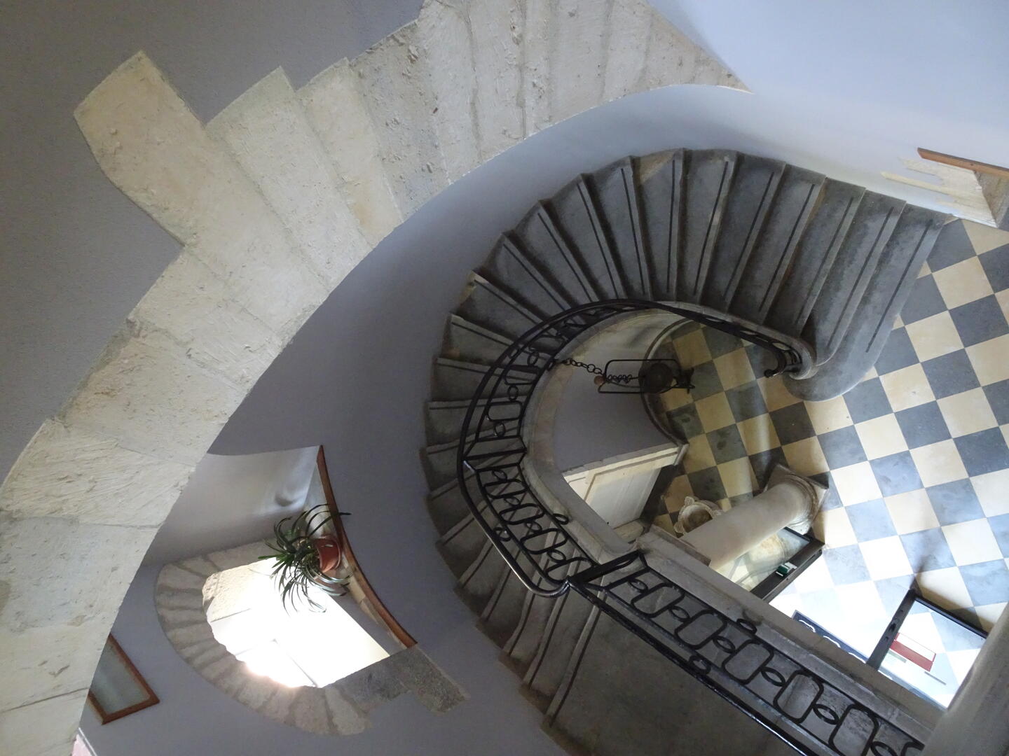 Ausgetretene Holzstufen zwischen den oberen Stockwerken des Maison des Chevaliers, unserer aktuellen Unterkunft