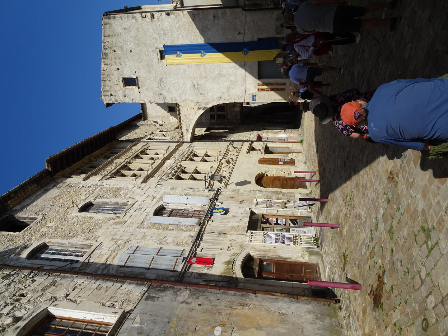 Als auch das erledigt war, besichtigten wir bei strahlendem Sommerwetter den Ort. Am Morgen hatten wir uns mit Informationsmaterial in der Touristeninformation versorgt. Der ausgesprochen freundliche Mitarbeiter dort erzählte uns begeistert, in welchem geschichtlichen Kleinod wir uns befänden. In Frankreich weiß man um die Bedeutung dieses Ortes, wir hatten von Viviers bis dahin noch nichts gehört. Wir wurden nicht enttäuscht. Die Kathedrale von Viviers geht auf das fünfte Jahrhundert zurück. Vom Belvédère de Châteauvieux aus hatten wir einen phantastischen Blick auf die Rhône und die weiter entfernten Hügel. Der mittelalterliche Stadtkern erinnert an italienische Städte. Die Gassen sind steil und verwinkelt und die kleinen Häuser stehen dicht gedrängt. Die Dächer sind ockerfarben und die Dachziegel halbrund geformt. Schnell fing uns die besondere Atmosphäre ein.