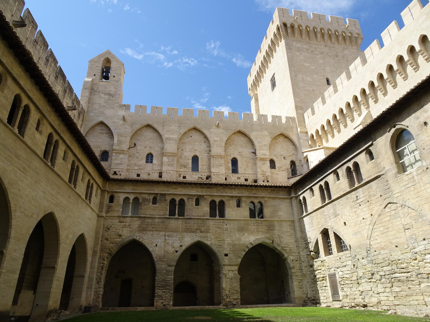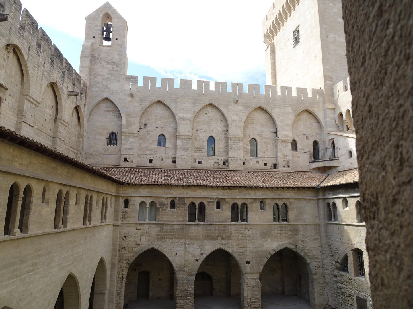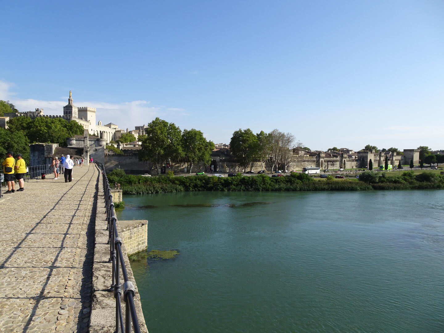 Heute Morgen gelang es uns, dank des ruhigen Hotels und des guten Bettes, auszuschlafen. Anschließend kauften wir für ein spätes Frühstück ein. Nach der Stärkung machten wir uns auf, den Papstpalast, gebaut im 14. Jahrhundert, und die berühmte Brücke von Avignon, gebaut im 12. Jahrhundert, zu besichtigen. Die Temperaturen sind hochsommerlich und selbst im Inneren des Papstpalastes mit seinen dicken Mauern war es sehr warm. Es ist ein imposantes Gebäude mit einer bewegten Geschichte. Dank eines sog. Historytabs (ein Tabletcomputer mit VR), welches jedem Besucher zur Verfügung gestellt wird, konnte man eine ungefähre Vorstellung des damaligen Aussehens der einzelnen Räume bekommen und erhielt viele geschichtliche Informationen.