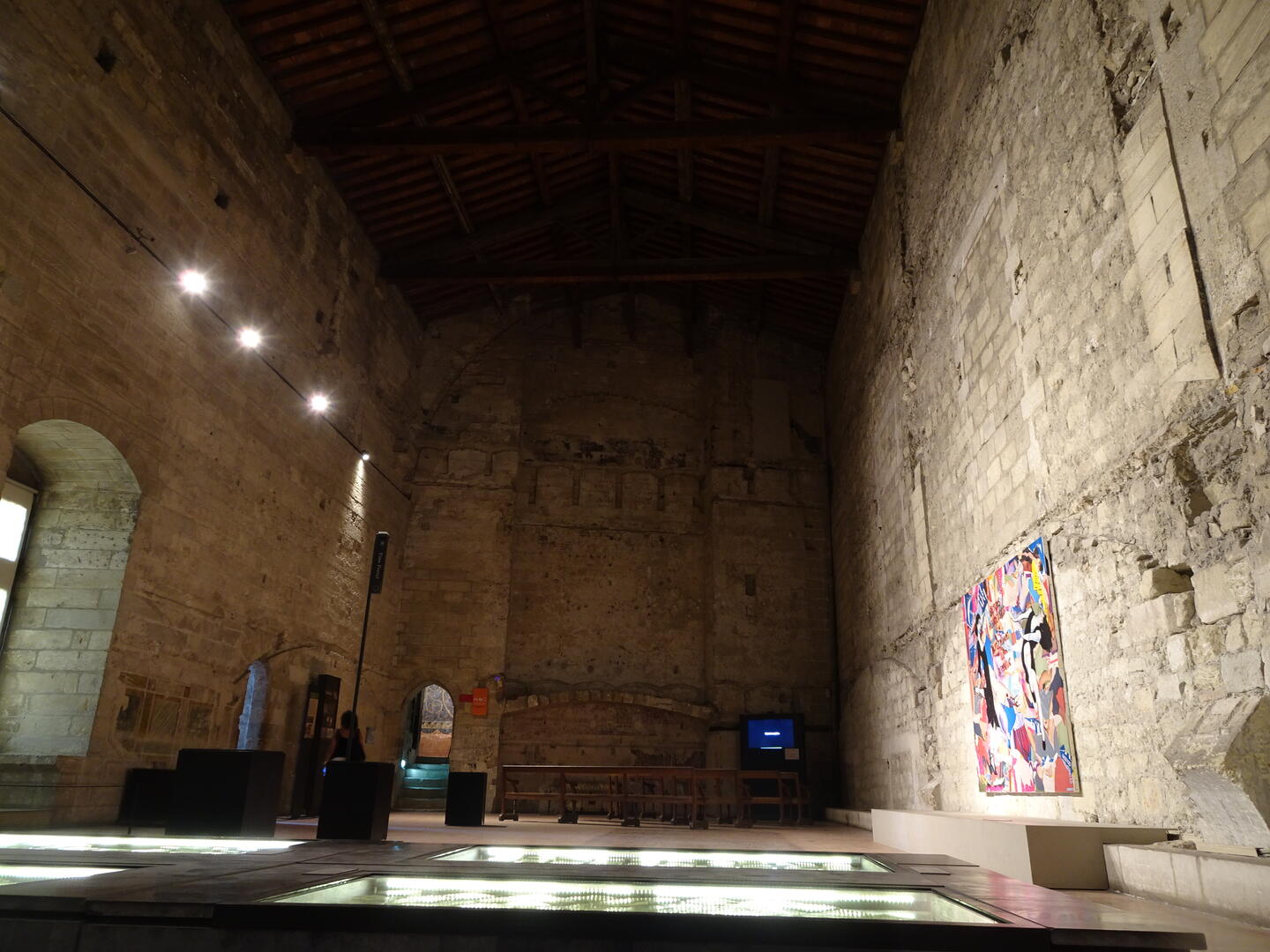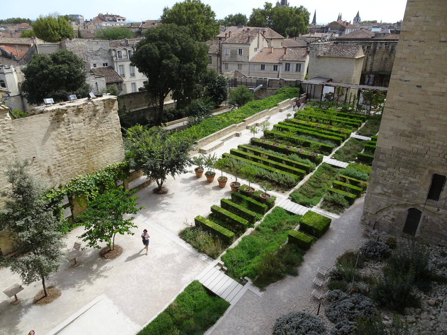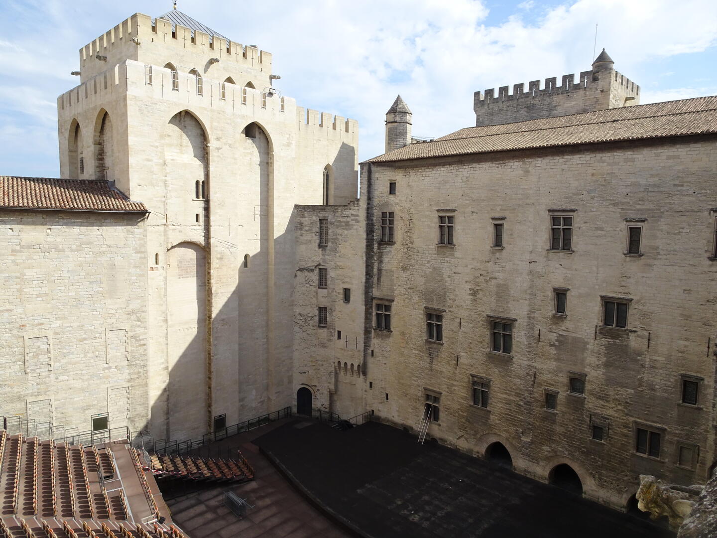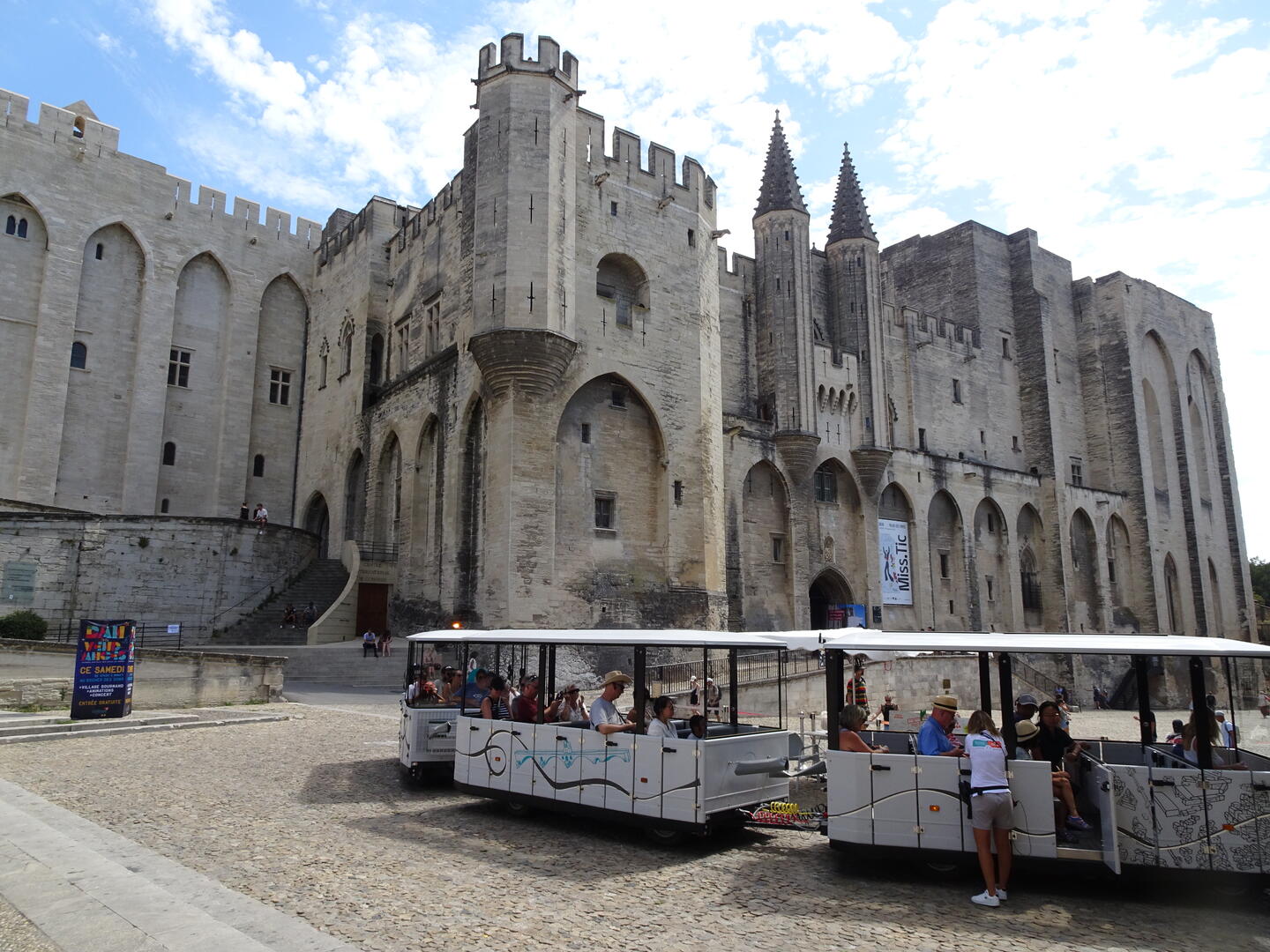 Heute Morgen gelang es uns, dank des ruhigen Hotels und des guten Bettes, auszuschlafen. Anschließend kauften wir für ein spätes Frühstück ein. Nach der Stärkung machten wir uns auf, den Papstpalast, gebaut im 14. Jahrhundert, und die berühmte Brücke von Avignon, gebaut im 12. Jahrhundert, zu besichtigen. Die Temperaturen sind hochsommerlich und selbst im Inneren des Papstpalastes mit seinen dicken Mauern war es sehr warm. Es ist ein imposantes Gebäude mit einer bewegten Geschichte. Dank eines sog. Historytabs (ein Tabletcomputer mit VR), welches jedem Besucher zur Verfügung gestellt wird, konnte man eine ungefähre Vorstellung des damaligen Aussehens der einzelnen Räume bekommen und erhielt viele geschichtliche Informationen.