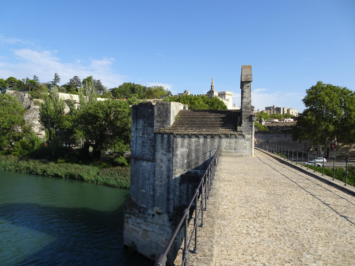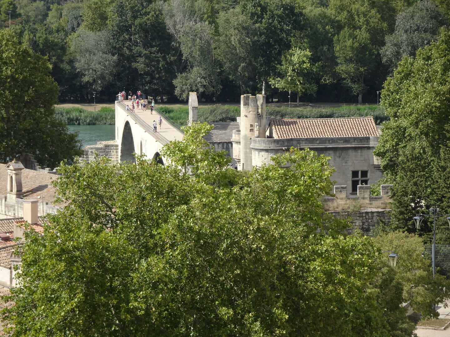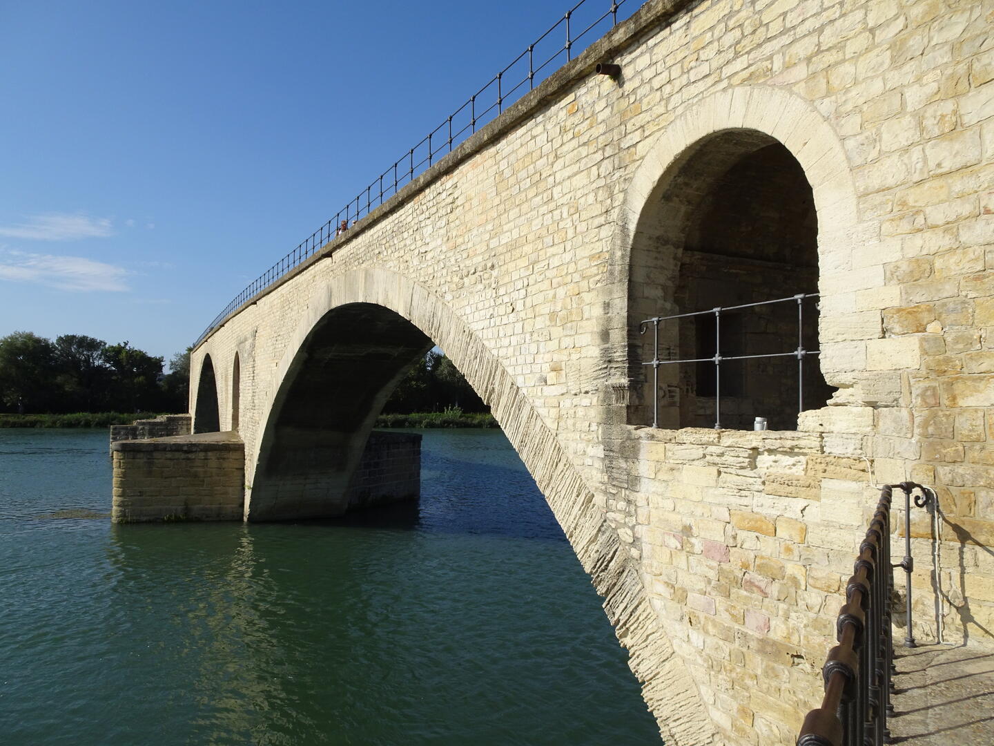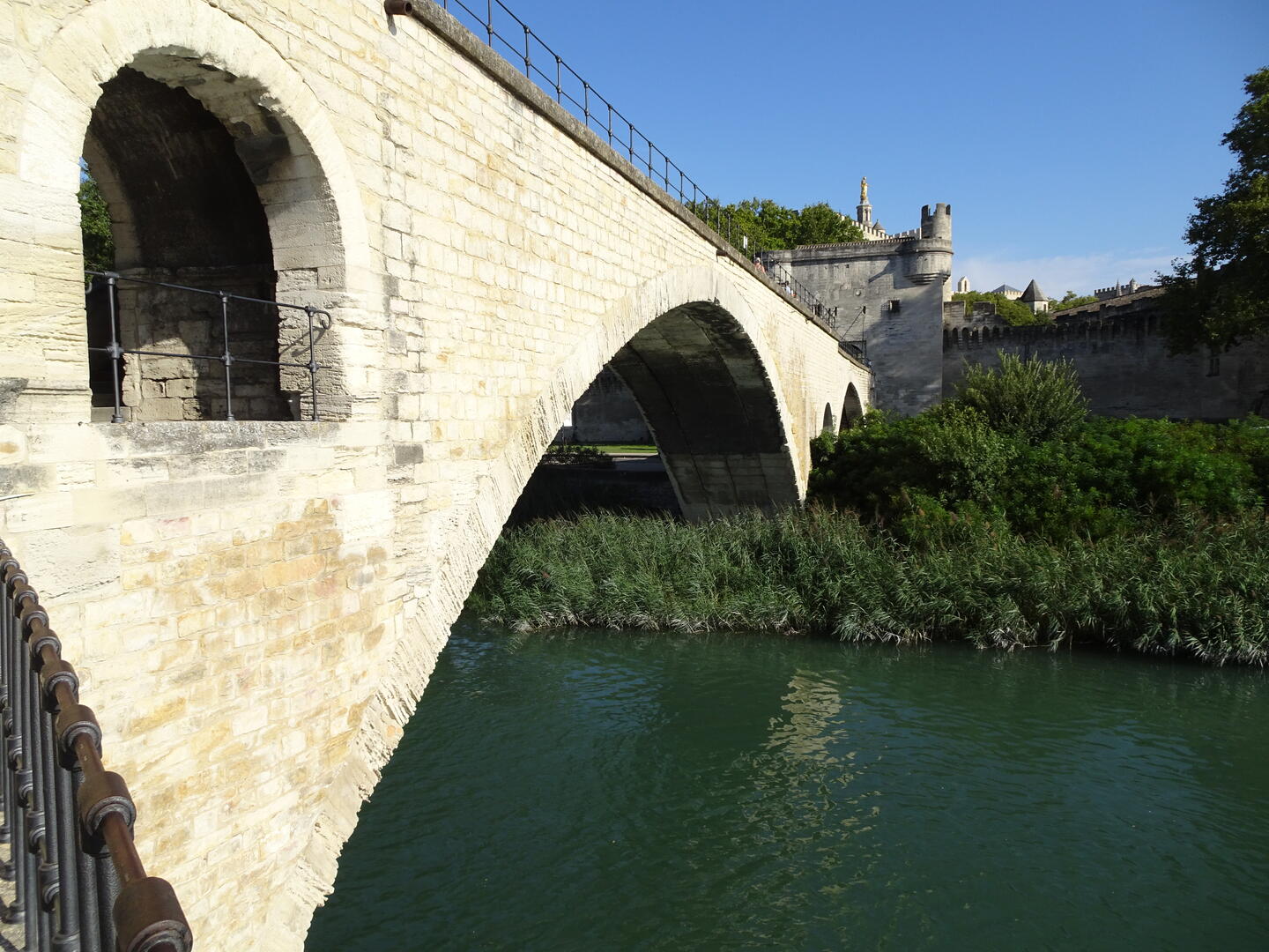 Die Besichtigung dieses wirklich imponierende Bauwerk dauerte wieder einmal deutlich länger als erwartet und wir waren froh, die Pont Saint-Bénézet mit wenigen Schritten erreichen zu können. Die Brücke von Avignon, unzählige Male von vielen Kindern besungen, hat natürlich eine viel interessantere Geschichte zu erzählen als das Lied vermuten lässt. Ein kleiner Audioguide vermittelte uns auch hier das nötige Wissen über dieses berühmte Bauwerk.