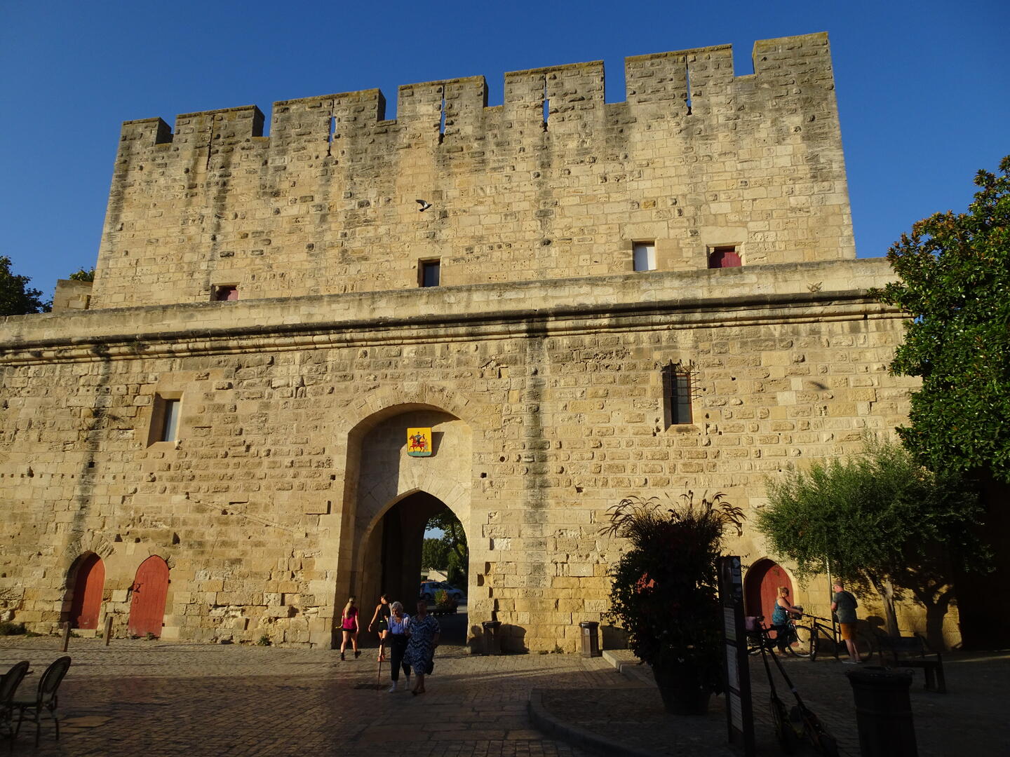 Blick vom Canal du Rhône à Sète auf den Tour de Constance in Aigues-Mortes Wo?Nach Rechtsklick