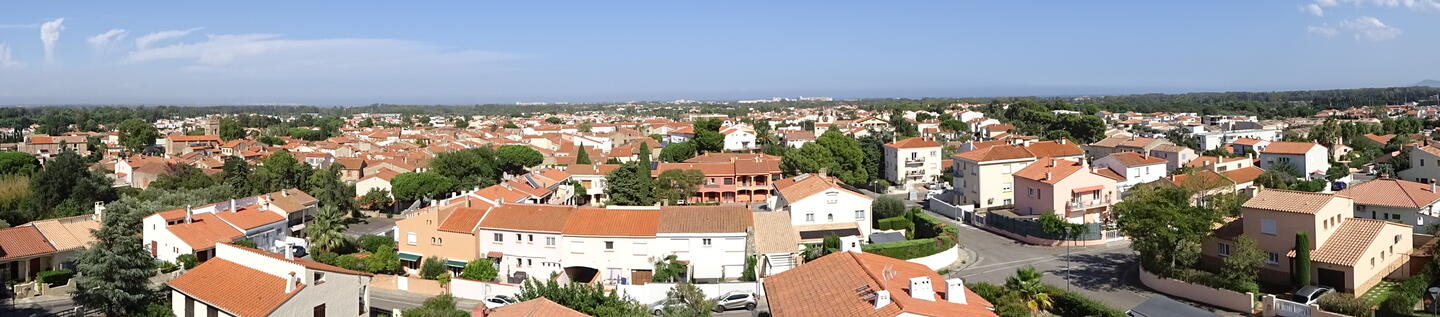 An unserem ursprünglichen Zielort teilte uns eine sehr nette Rezeptionistin mit, dass nicht nur ihr Hotel, sondern auch allen übrigen am Ort ausgebucht wären. In Richtung auf unser morgiges Ziel gab es in vertretbarer Entfernung keine Unterkünfte, sodass wir nach Saint-Cyprien zurückfahren mussten, wo wir mit Hilfe der Hotelangestellten ein Hotel reservierten, das noch freie Zimmer hatte und in dem wir unsere Räder sicher unterstellen konnten. Unser Hotel liegt auf einem kleinen Hügel und bietet vom Balkon einen großartigen Ausblick bis zum Mittelmeer. Die Zeit reichte noch zum Waschen unserer Wäsche. Zum Trocknen der Wäsche war uns der Wind heute ausnahmsweise willkommen.