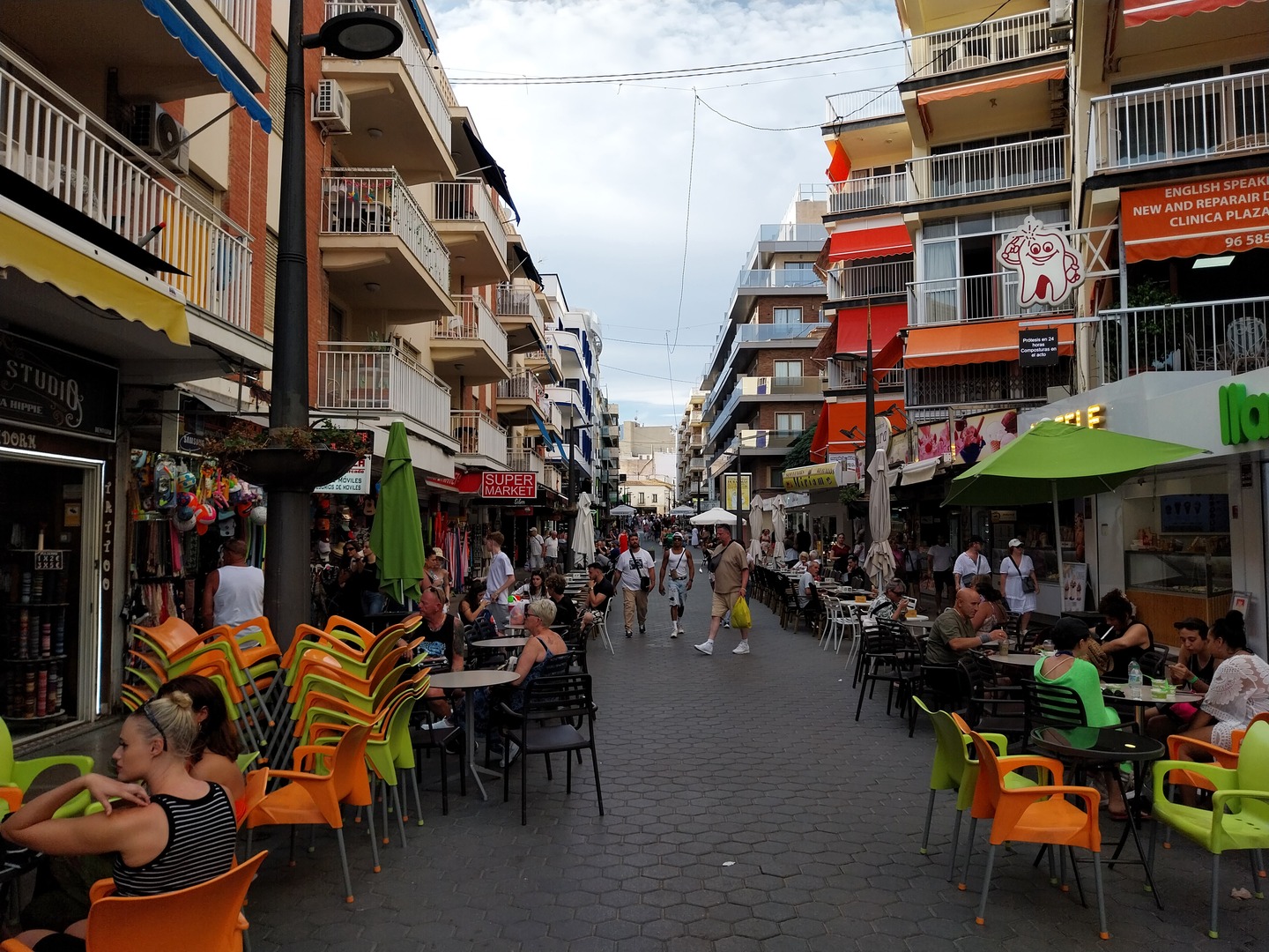 Während einer Kaffeepause kamen wir mit einem sympathischen russischen Paar in ein interessantes Gespräch. Nachdem wir in Benidorm das Hotel bezogen hatten, besuchten wir den Stadtstrand. Der Eindruck, den wir vor neun Jahren beim Passieren der Stadt von weitem hatten, bestätigte sich. Die Bausünden der letzten Jahrzehnte zeichnen ein unschönes Stadtbild. Der Strand ist wie auf abschreckenden Bildern dicht an dicht mit Sonnenliegen bestückt und an den dahinterliegenden Straßen liegen dicht gedrängt Bars, Restaurants und Geschäfte. Für uns ist es sicher keine Option, hier länger als eine Nacht zu verweilen. Unser Hotel liegt etwas entfernt vom Zentrum des Nachtlebens und wir rechnen daher mit einer erholsamen Nacht.