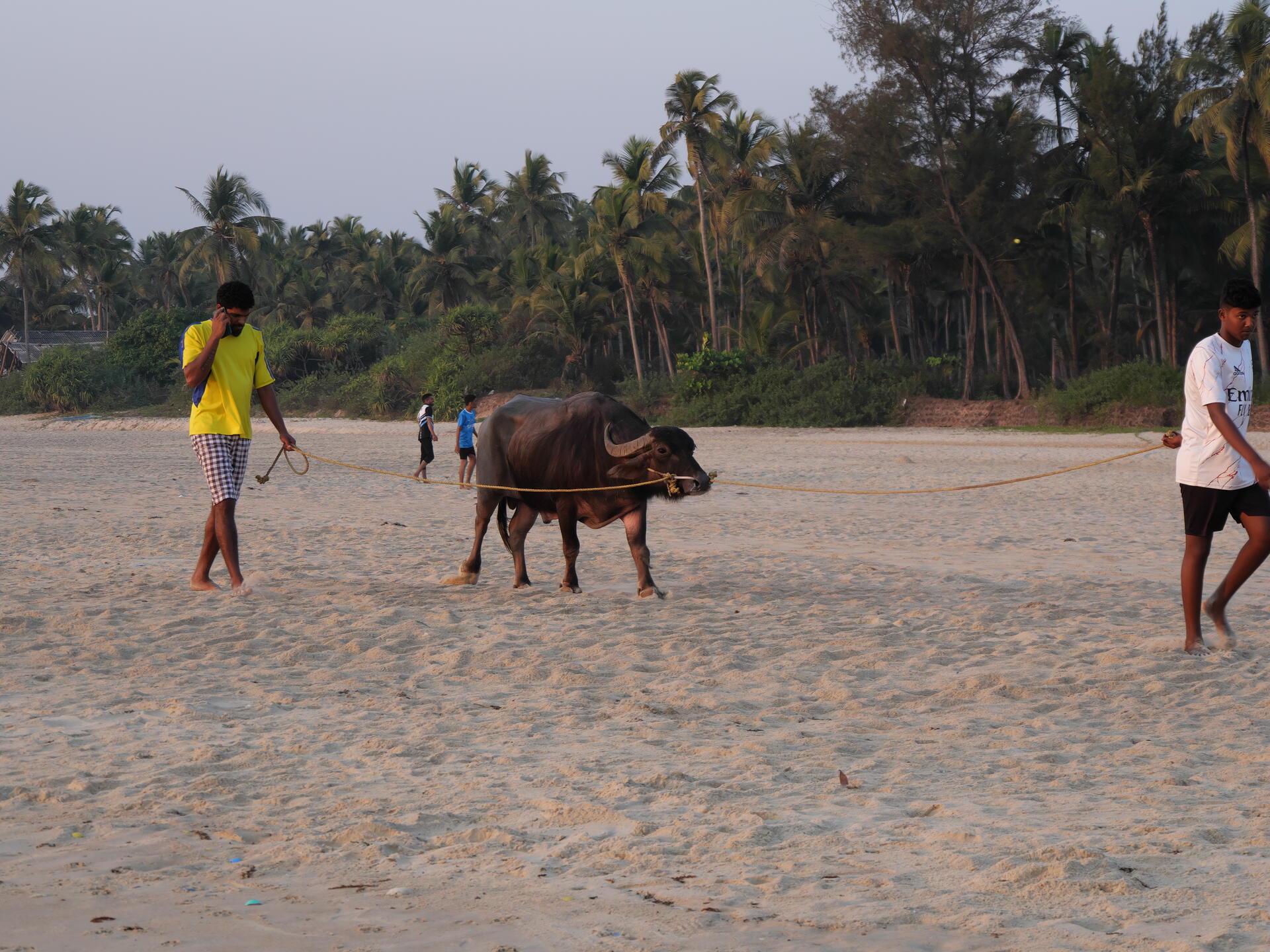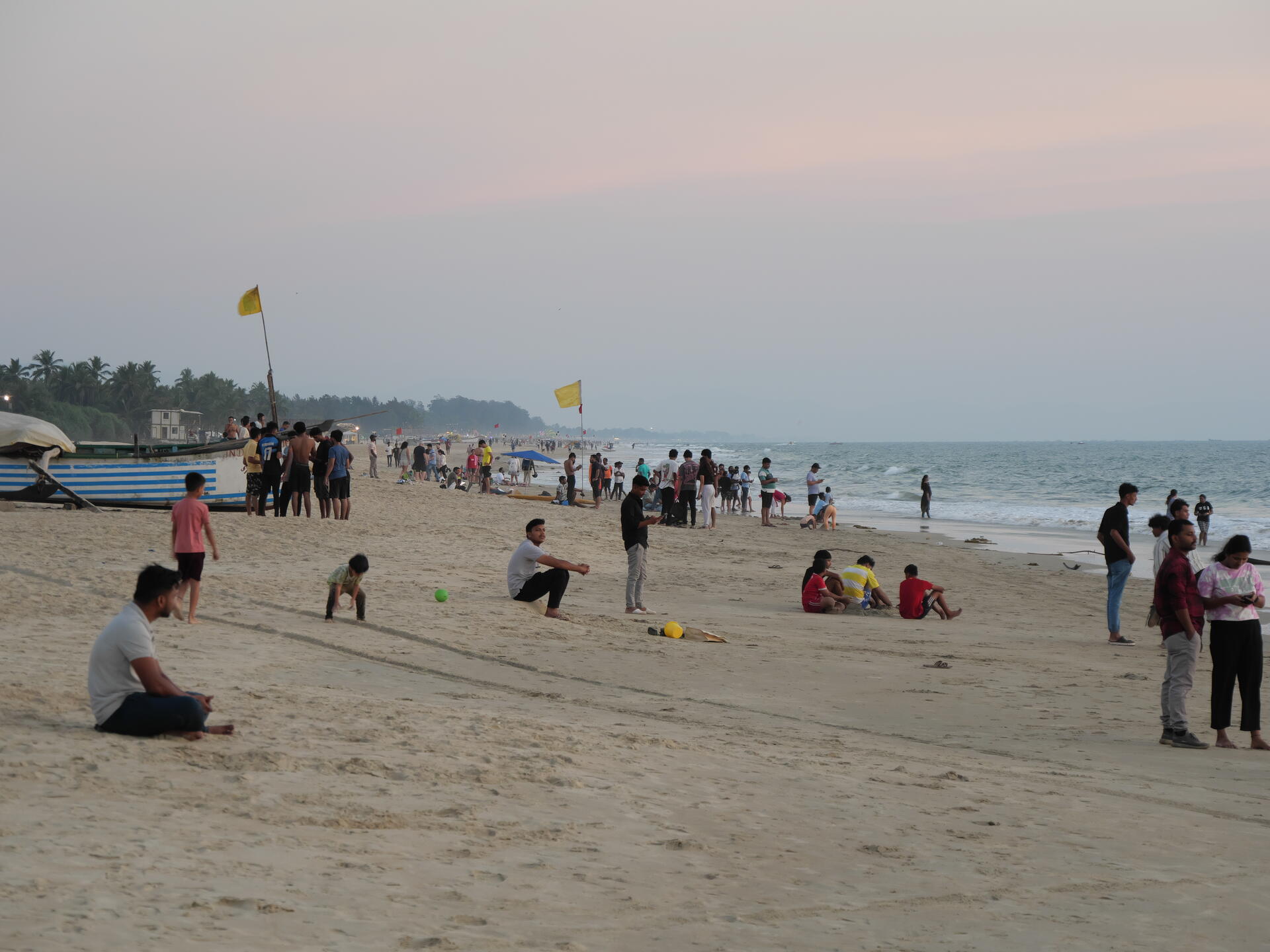 Folgender typischer Tagesablauf hat sich herausgebildet: Nach dem Aufstehen um 7:15 Uhr gehen wir Schwimmen. Zu dieser Uhrzeit gibt es noch keine hohen Wellen und wir können ungehindert unsere Bahnen ziehen. Anschließend duschen wir und die wenigen Kleidungsstücke, die wir hier tragen, sind täglich schnell gewaschen. Wie den meisten Einheimischen genügt uns zum Frühstück süßer, gewürzter indischer Tee und eine kleine Portion eines gut gewürzten Dhals (Hülsenfruchtgericht), in das eine Art Brötchen gestippt wird und das wir im „Restaurant“ unseres Gastgebers einnehmen. Beim Frühstück beraten wir mit dem Wirt, was uns als Abendessen zubereitet werden soll. Die Auswahl an Gerichten ist gegenüber unseren beiden vorherigen Aufenthalten größer geworden. Der durch Polio eingeschränkte angestammte Koch erhält jetzt Unterstützung von einem ebenfalls sehr gutem Kollegen. Auf ein opulentes Mittagessen verzichten wir. Es ist erstaunlich, wie wenig Energie wir aufnehmen müssen, wenn damit nicht die Körpertemperatur gehalten werden muss. Statt des Mittagessens genießen wir hier Obst von einer Reife und Schmackhaftigkeit, wie es es leider in Deutschland nicht gibt. Etwa bis zum Mittag bewahrt uns der Zeitunterschied von viereinhalb Stunden vor den aktuellen Nachrichten in FAZ und NZZ. Haben wir uns über die genug geärgert, machen wir entweder einen langen Spaziergang am breiten Sandstrand oder wir stocken im Ort unseren Obstvorrat auf.