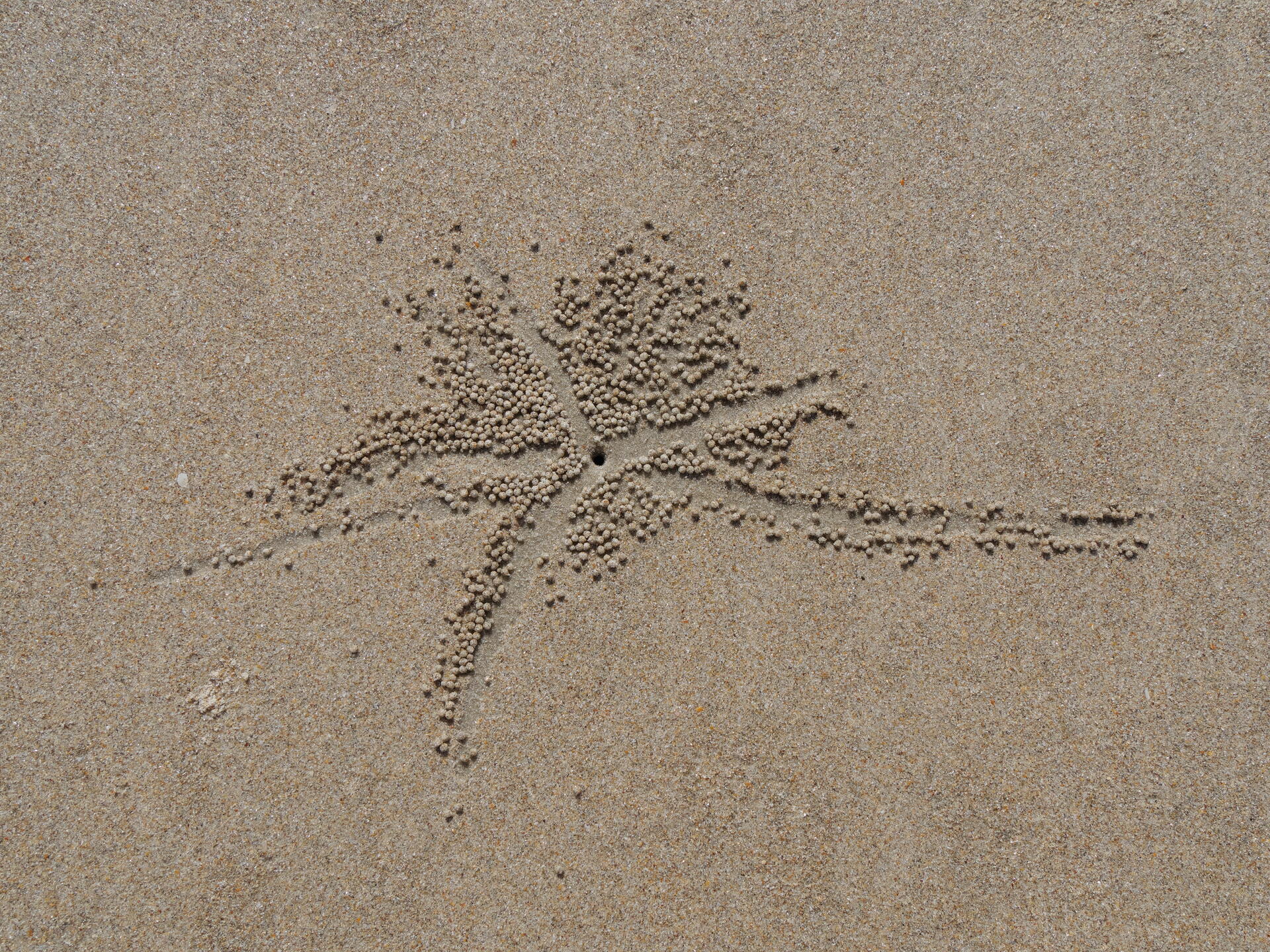 Nach jeder Flut räumen Krabben Sand aus ihrem Unterschlupf Wo?Nach Rechtsklick
