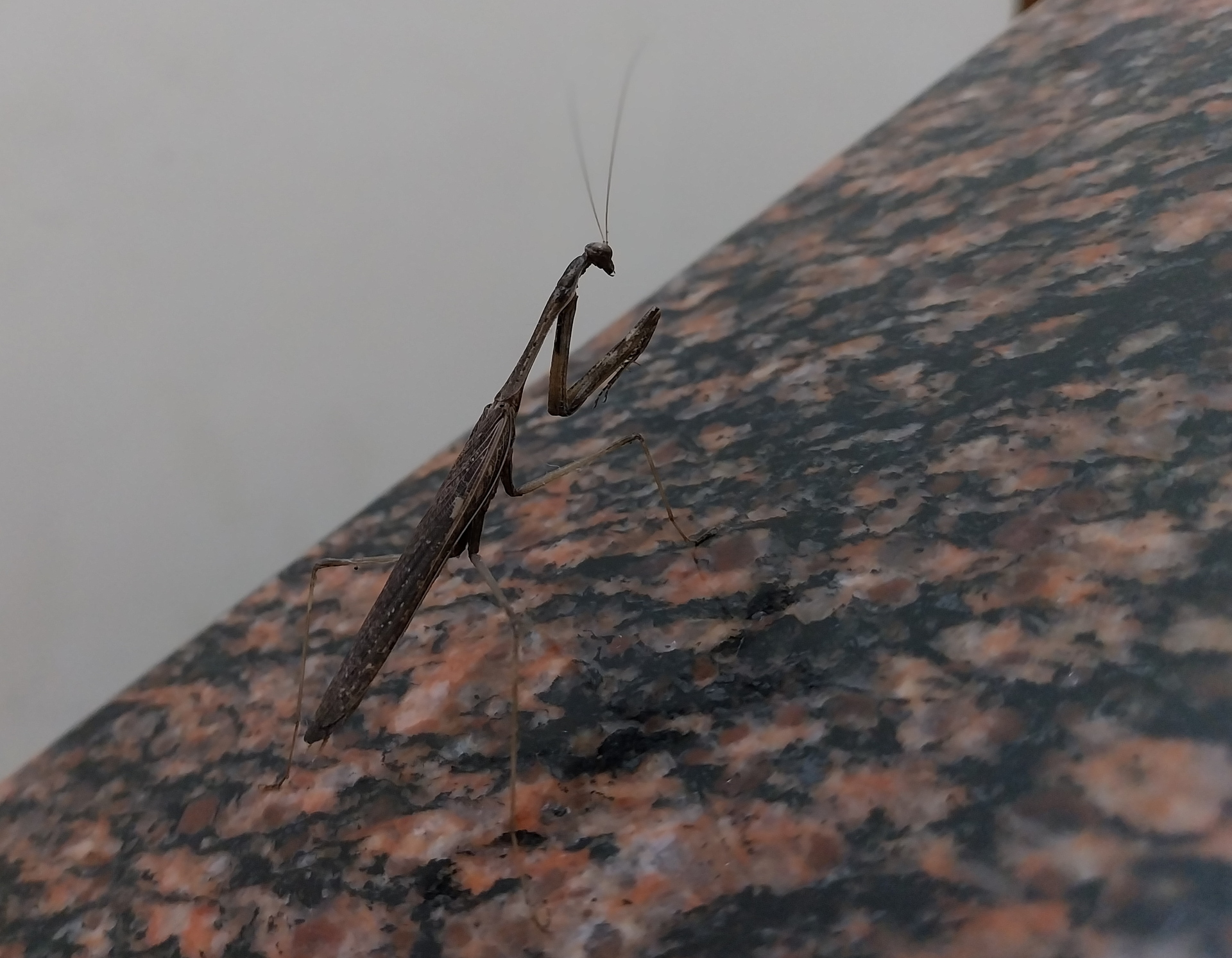 Eine Gottesanbeterin auf dem Handlauf der Treppe Wo?Nach Rechtsklick