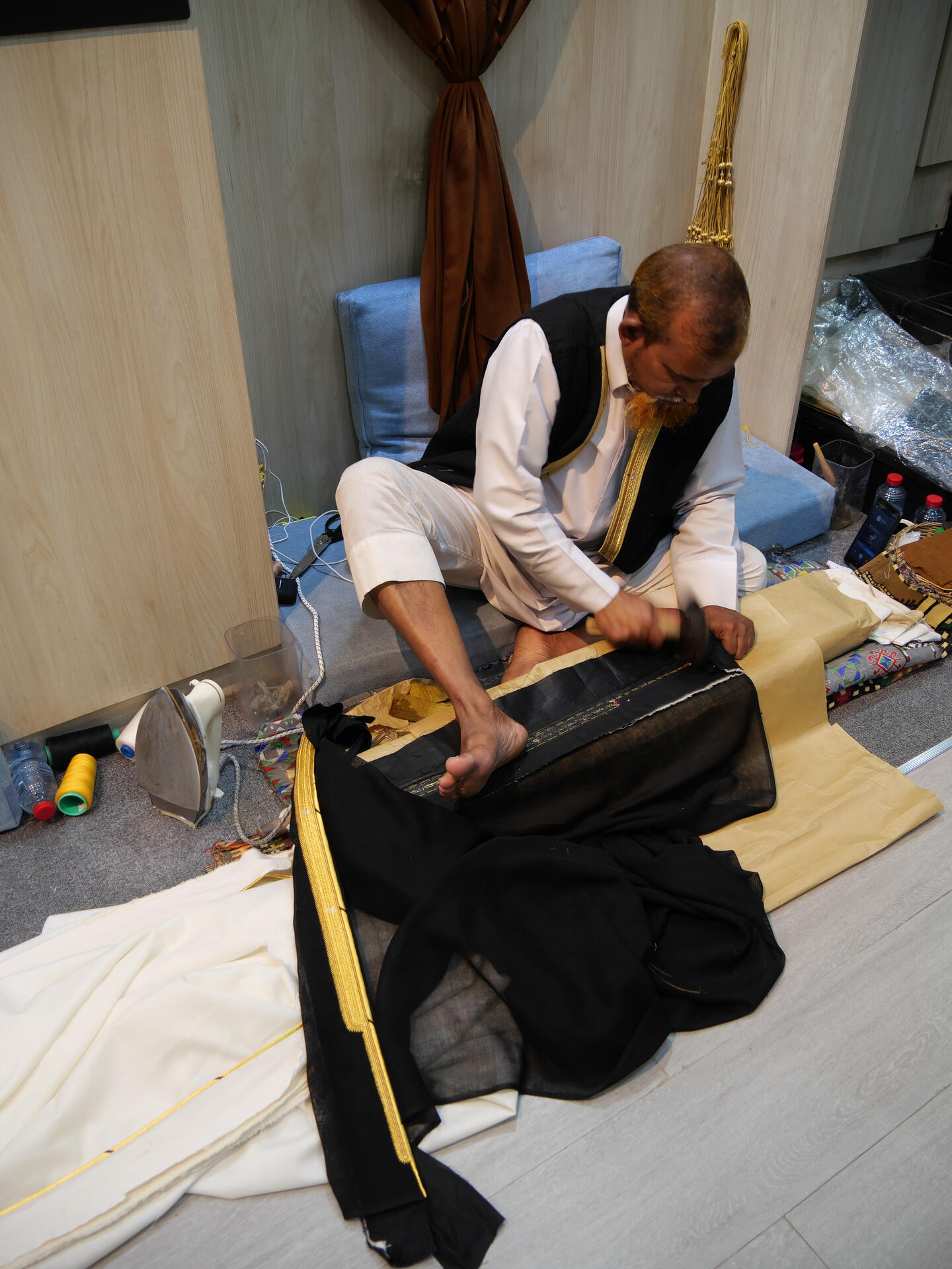 Eine mit Goldfäden bestickte Einfassung an einem Kleidungsstück wird geglättet Wo?Nach Rechtsklick