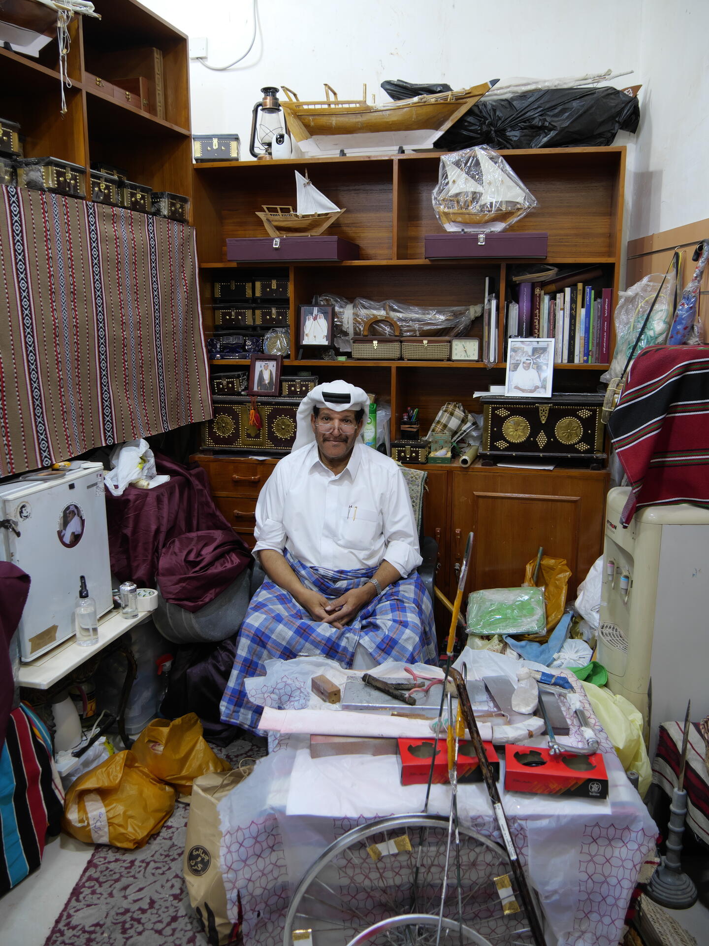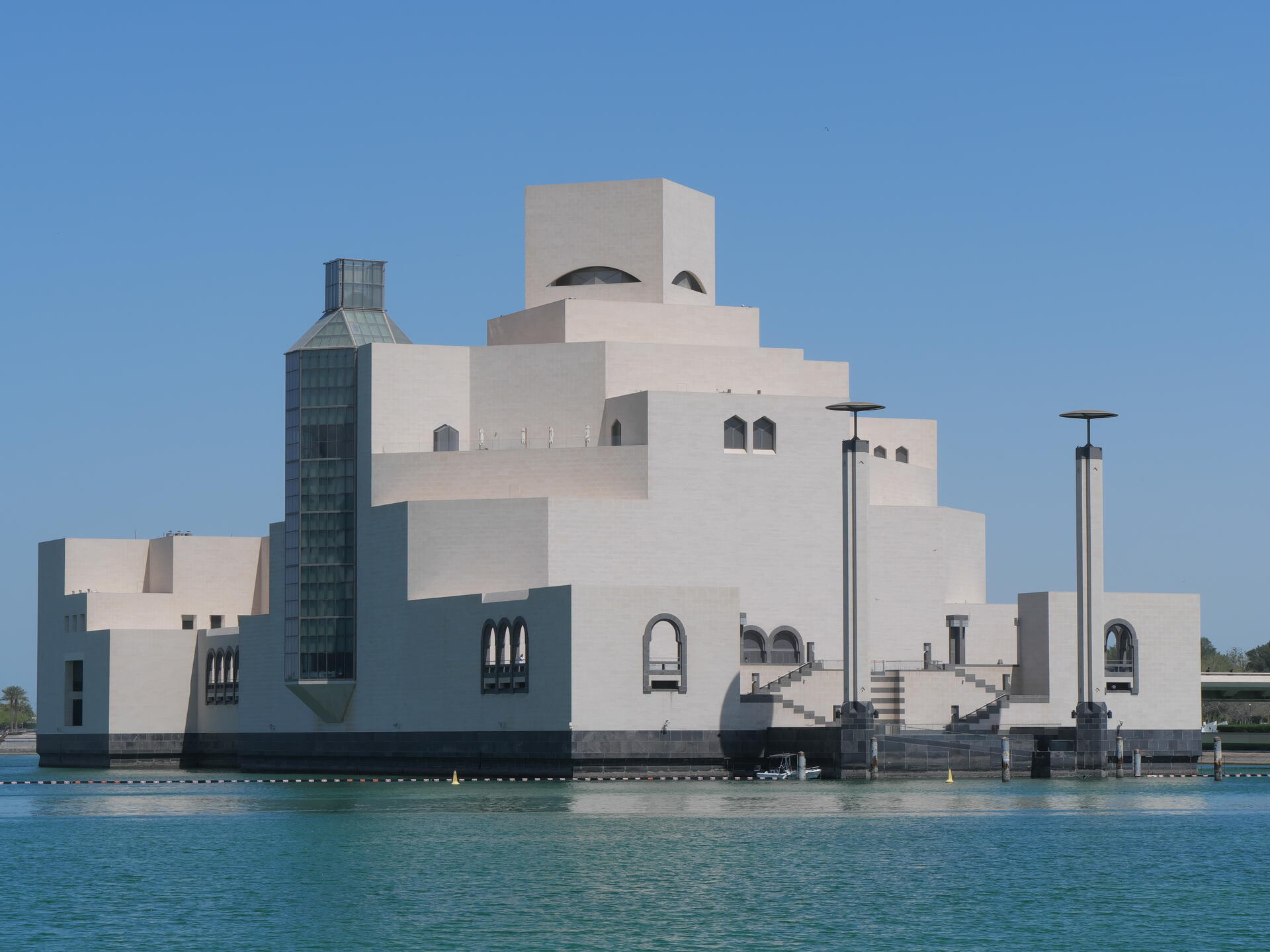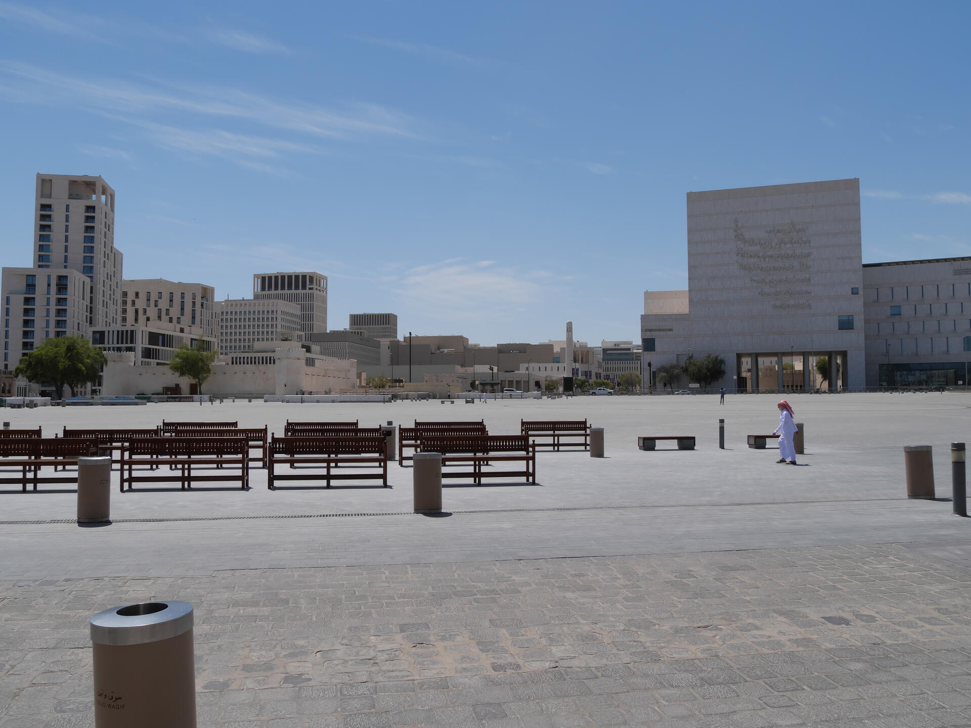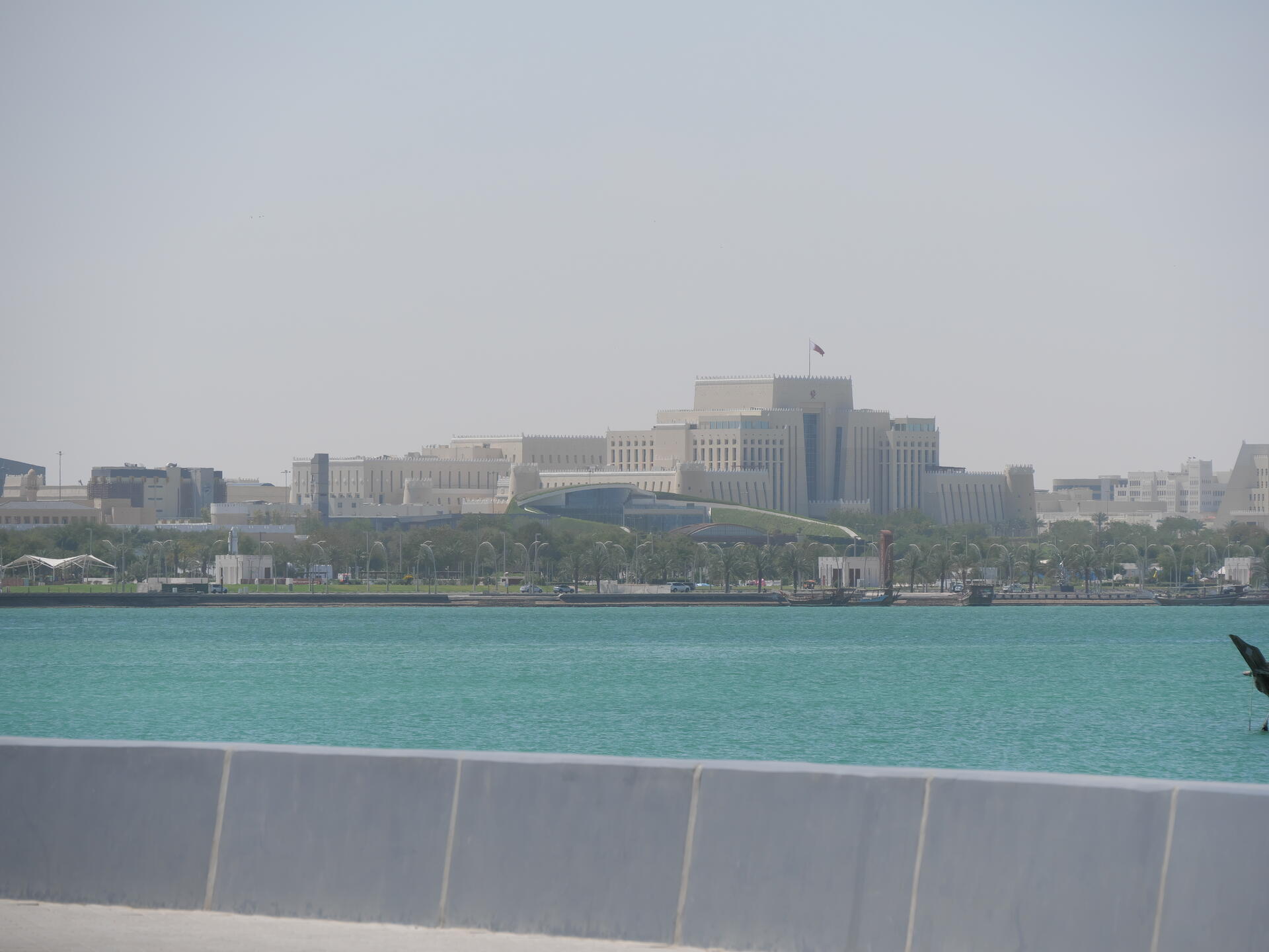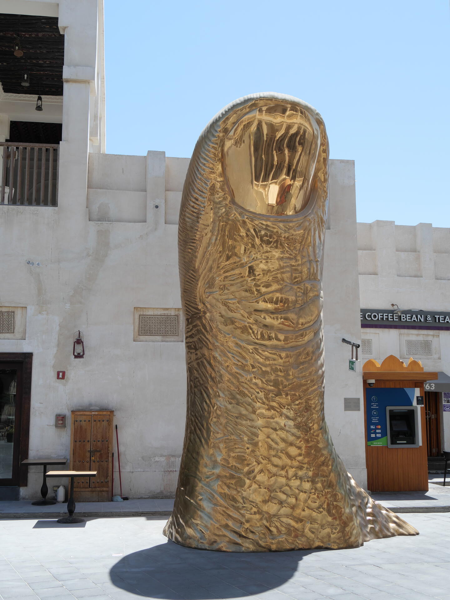 Nach einem arabischen Frühstück im Hotel besuchten wir den Souq Waqif. Wir können diesen riesigen traditionellen Markt zu Fuß erreichen. Neben traditioneller Kleidung werden u. a. auch Teppiche aus verschiedenen Ländern angeboten. Wir probierten Halva aus dem Oman sowie Weißen Kaffee gleichen Ursprungs. Immer wieder sind wir überrascht, wie freundlich und offen, aber auch wie stolz die Menschen auf ihr Land und ihre Kultur sind. Dabei werden wir das Bild von Nancy Faeser mit ihrer Regenbogenbinde zur Fußball-WM nicht los. Es bleibt uns noch immer unbegreiflich, mit welcher Arroganz und vermeintlichen moralischen Überheblichkeit sie Deutschland in Qatar repräsentiert hat. Im Anschluss gingen wir durch unglaublich saubere und klimatisierte Unterführungen bis zur sehr schön angelegten Uferpromenade, der Doha Corniche. Dort stießen wir auf ein kleines Hafenbecken, in dem viele großer Holzboote lagen. Wir vermuten, die Boote im traditionellen Stil werden für private Feiern gemietet. Auf der gegenüberliegenden Seite der türkisblauen Bucht liegt das Gebiet mit den Wolkenkratzern des kommerziellen Zentrums, welches sich durchaus mit dem von Singapur oder Dubai messen kann.