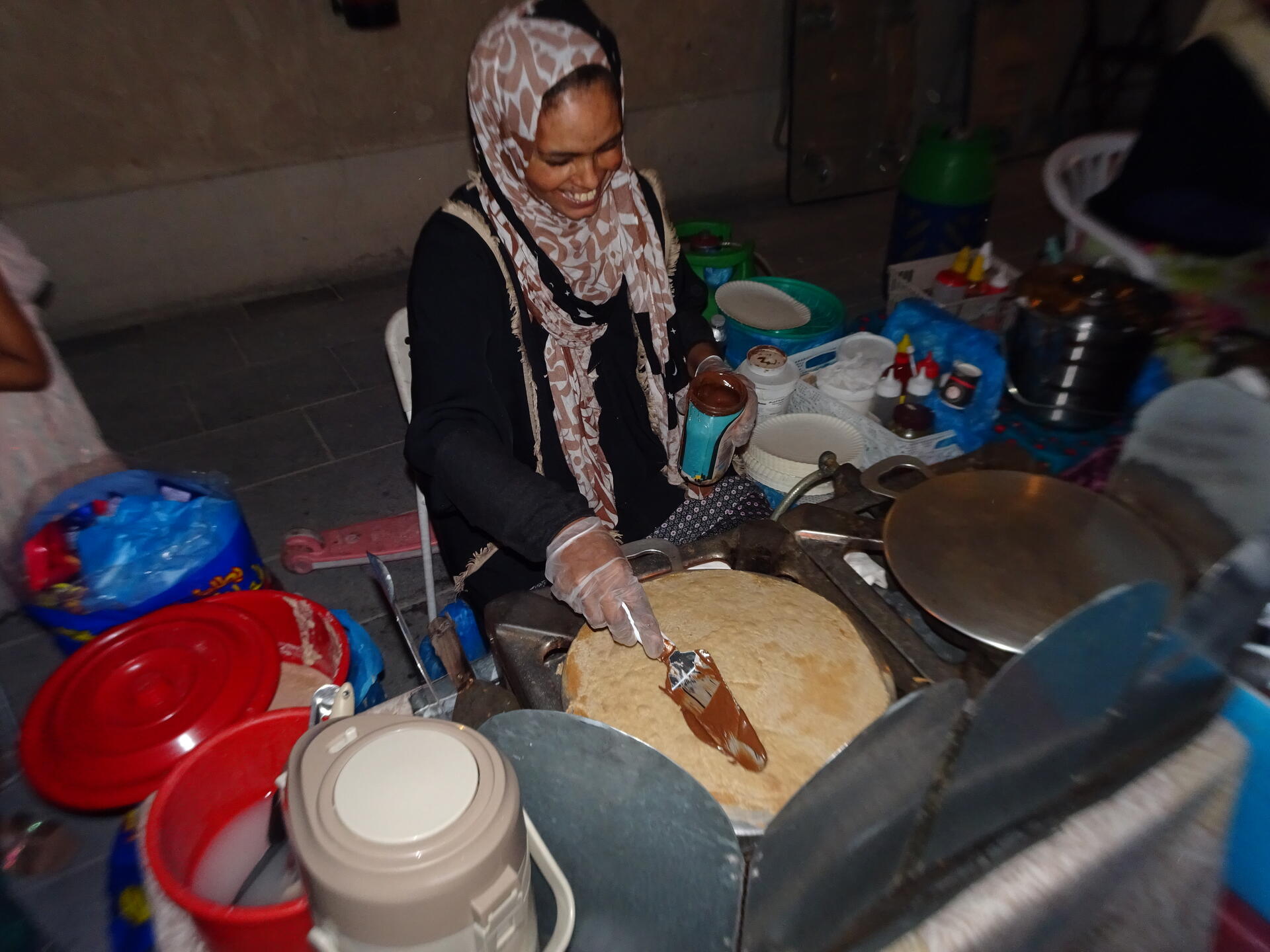 Die Künstlerin stammt aus Indien und stimmte mit uns in die Klage über das in Qatar nicht sehr gewürzte Essen ein Wo?Nach Rechtsklick