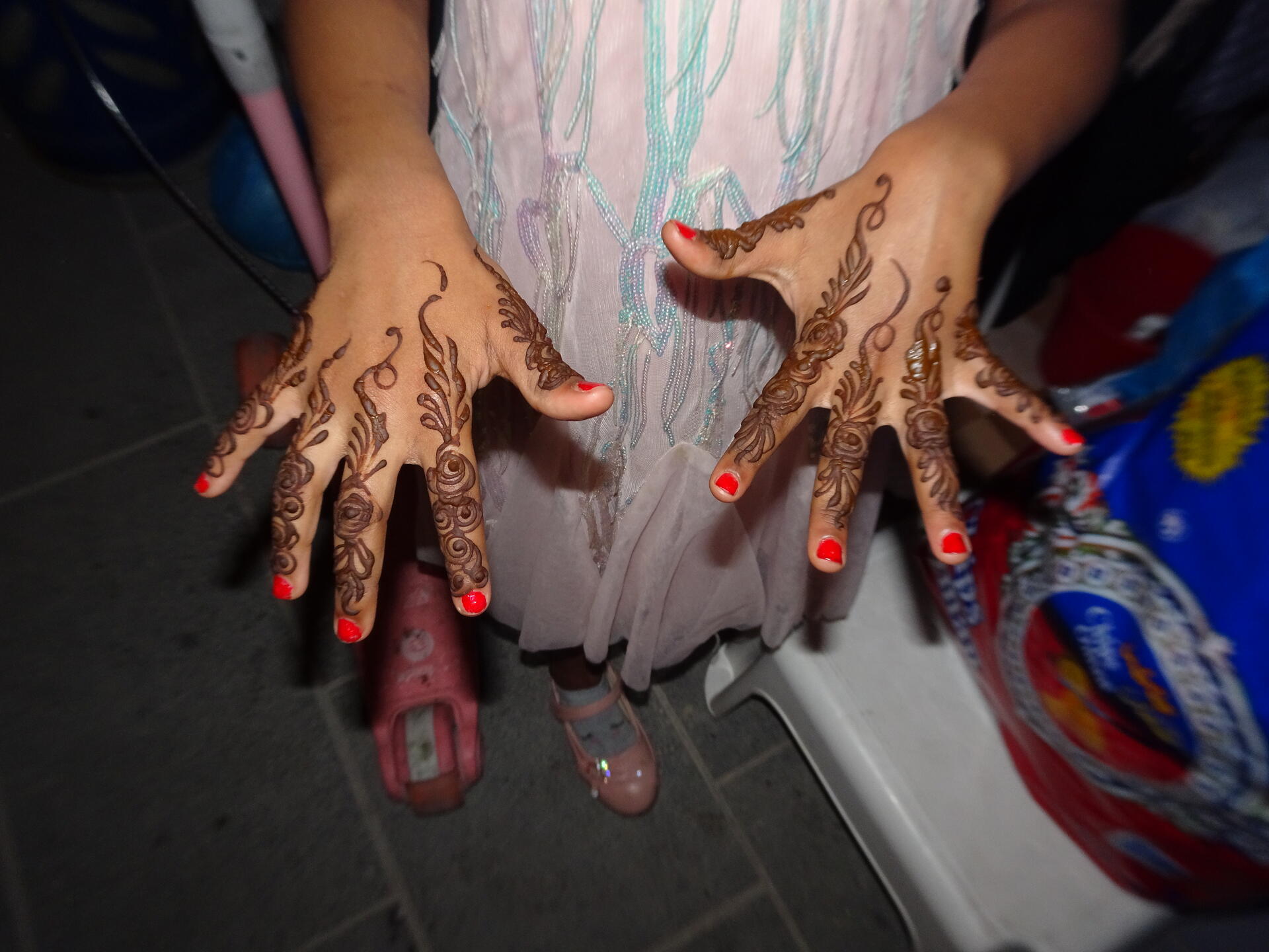 Stolz präsentiert ein Kind seine Henna-Tattoos Wo?Nach Rechtsklick