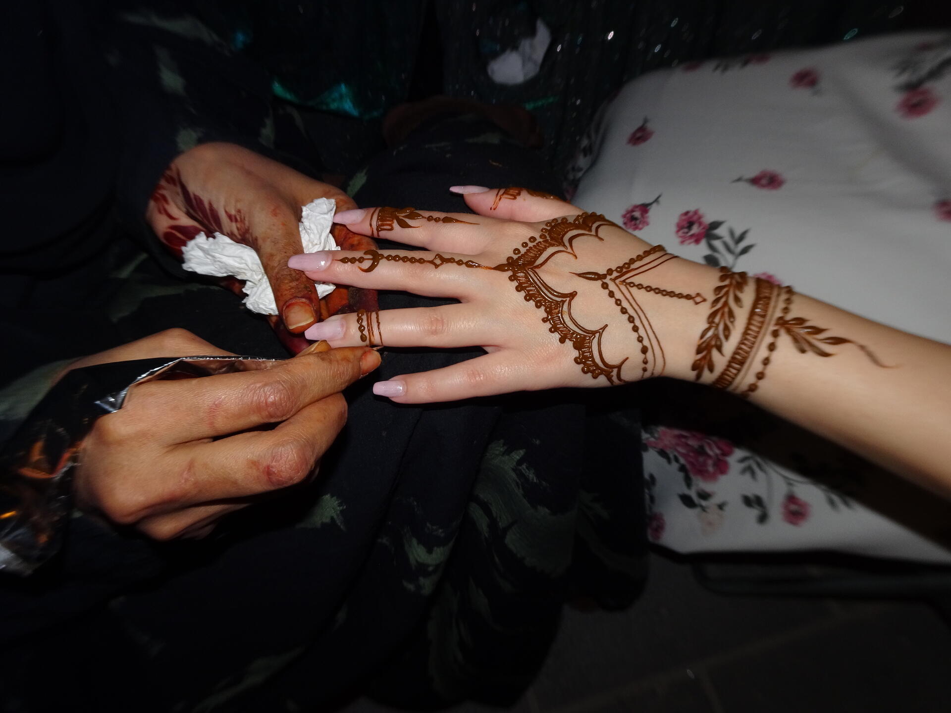 Während wir darauf warteten, dass für uns eine Art Crêpe zubereitet wurde, wurden am Nachbarstand einem Kind die Hände mit Henna Tattoos verziert. Die Arbeit an einer westlichen Kundin konnten wir mit Fotos dokumentieren. Es war faszinierend, mit welcher Geschicklichkeit und Präzision die Motive auf die Hände innerhalb von nur fünf Minuten aufgetragen wurden. Wir kamen mit der Künstlerin aus Bangalore ins Gespräch und sie bedauerte, dass es so wenig indisches Essen in Doha gibt, eine Klage, die wir leicht nachvollziehen können. Wir ließen den Abend mit einem ausgezeichneten türkischen Mocca ausklingen und freuten uns über den gelungenen ersten Tag in Doha.