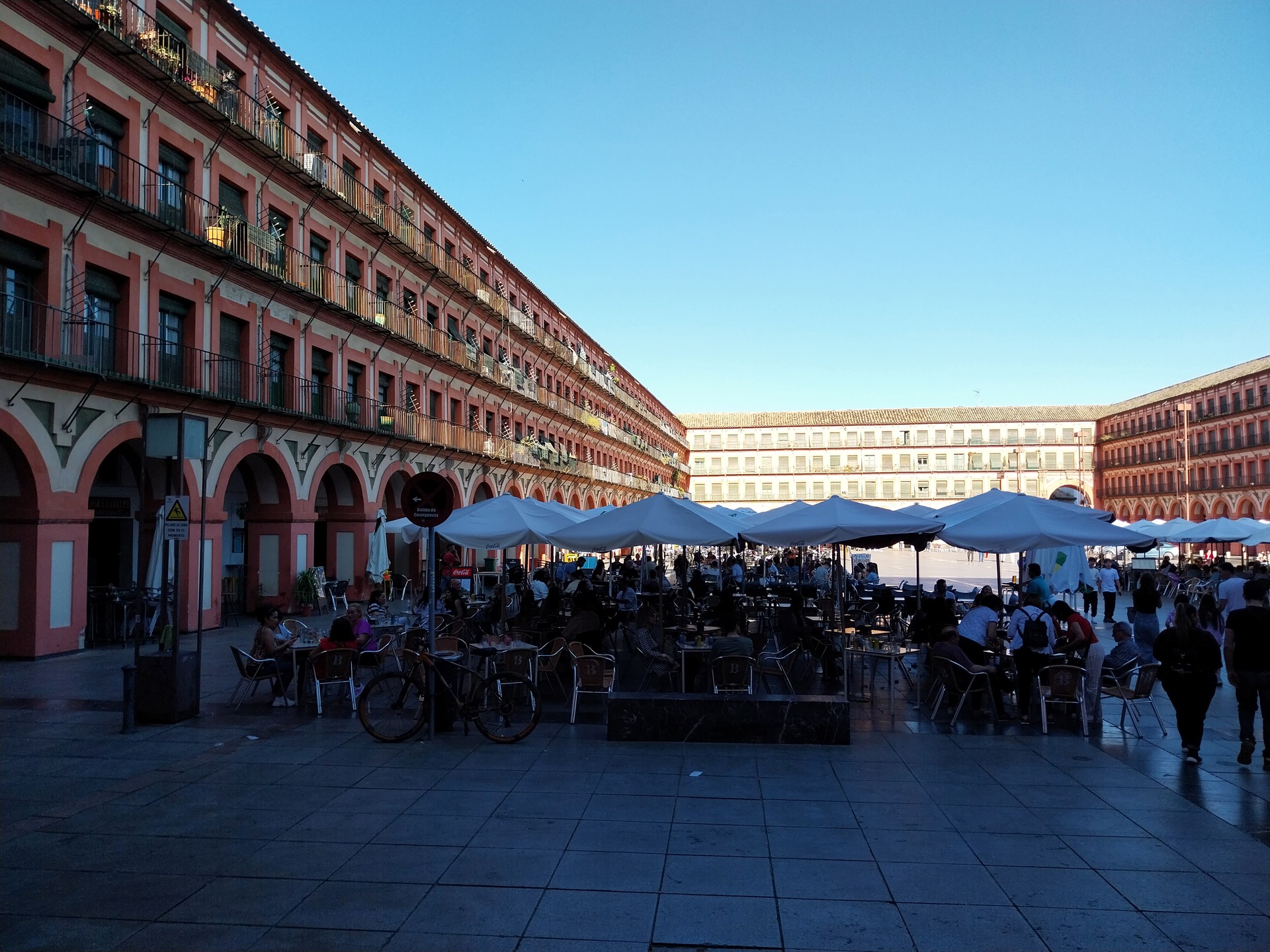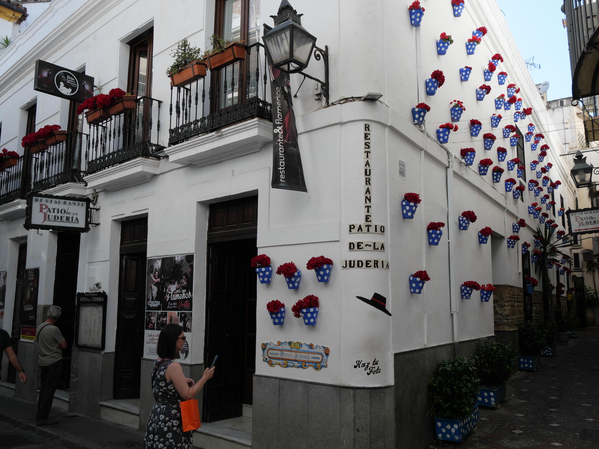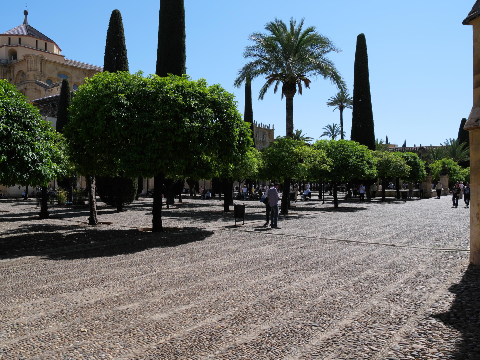 In Cordoba schien die Sonne, der Himmel war blau und die Temperatur ist bereits sommerlich. Wir erreichten unser Hotel zu Fuß und nachdem wir unterwegs etwas zu Mittag gegessen hatten, begannen wir unseren Stadtrundgang. Uns fiel auf, dass die Altstadt auch von vielen spanischen Touristen besucht wird. Von einem Plakat erfuhren wir, dass heute die große jährliche Weinverkostung stattfindet, was das begrenzte Zimmerangebot erklärt. Die lange Ess- und Trinkmeile am Ufer des Guadalquivir war bereits am Nachmittag sehr gut besucht. Die Stimmung auf den Straßen ist ausgelassen. Gleich neben unserer Unterkunft fanden wir ein syrisches Lokal, wo wir ausgezeichnet zu Abend aßen.