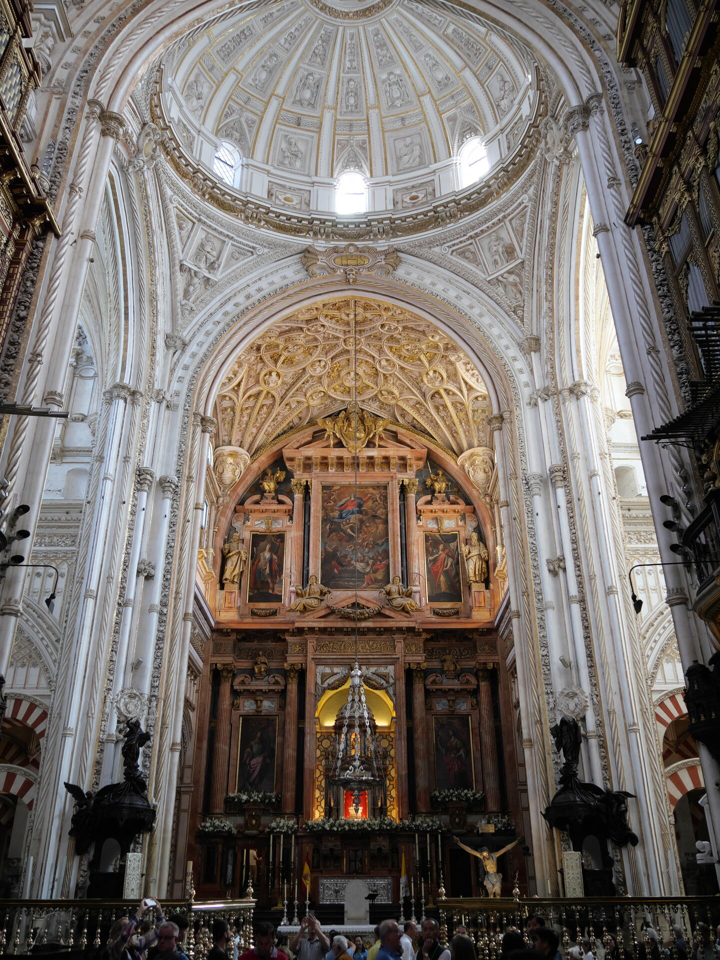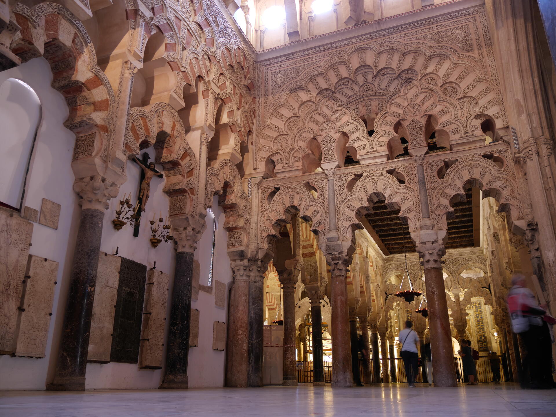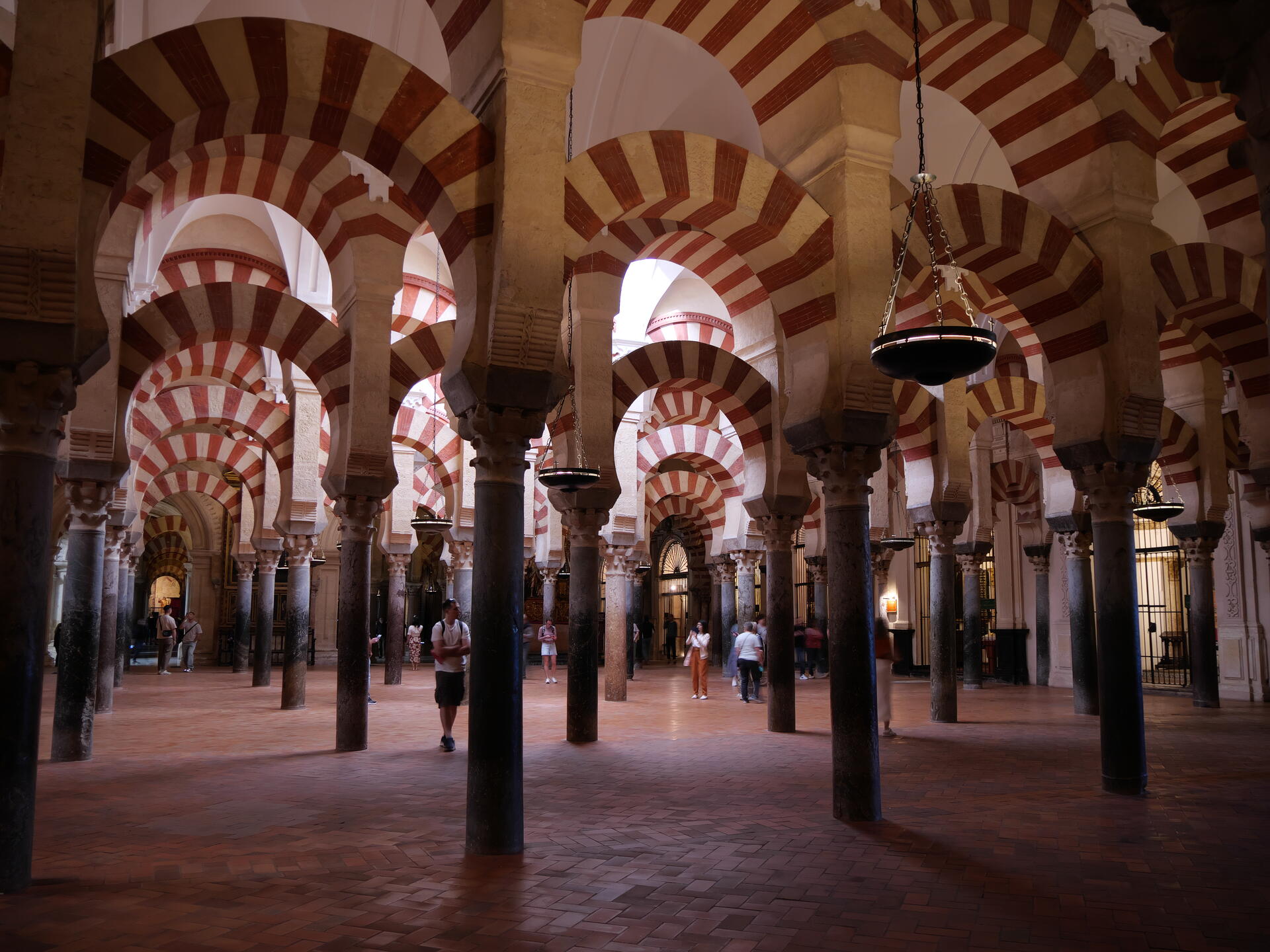 Mit unseren online vorbestellen Karten besuchten wir heute Morgen ab 9 Uhr die Moschee-Kathedrale von Córdoba. Die wechselvolle Geschichte der Stadt Córdoba spiegelt sich auf eindrucksvolle Weise in diesem großartigen Bauwerk wider. Die ursprüngliche Moschee, mit deren Bau 784 begonnen wurde und die nach der Vertreibung der Mauren im Jahr 1236 in eine christliche Kirche umgewandelt wurde, beeindruckt durch ihre Größe. Getragen von 856 Säulen, die aus Jaspis, Onyx, Marmor und Granit bestehen, präsentiert sie sich heute als Verschmelzung von islamischer Ästhetik und katholischem Prunk. In stündlichem Abstand wurden die jeweils nächsten Besucherkontingente eingelassen, worunter die Stimmung litt. Nicht alle verhalten sich der Bedeutung des Ortes angemessen und wir waren froh, den frühen Termin gewählt zu haben.