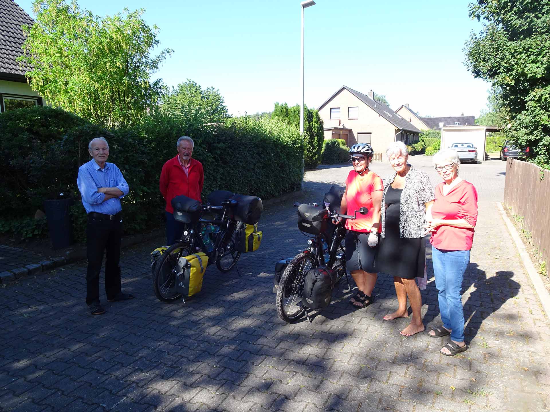 Heute packten wir nach einem kleinen Frühstück unsere Räder. Unsere Nachbarn, die uns in den vergangenen zwei Jahren zu lieben Freunden geworden sind, verabschiedeten uns bei strahlendem Sonnenschein und wir konnten endlich losfahren.