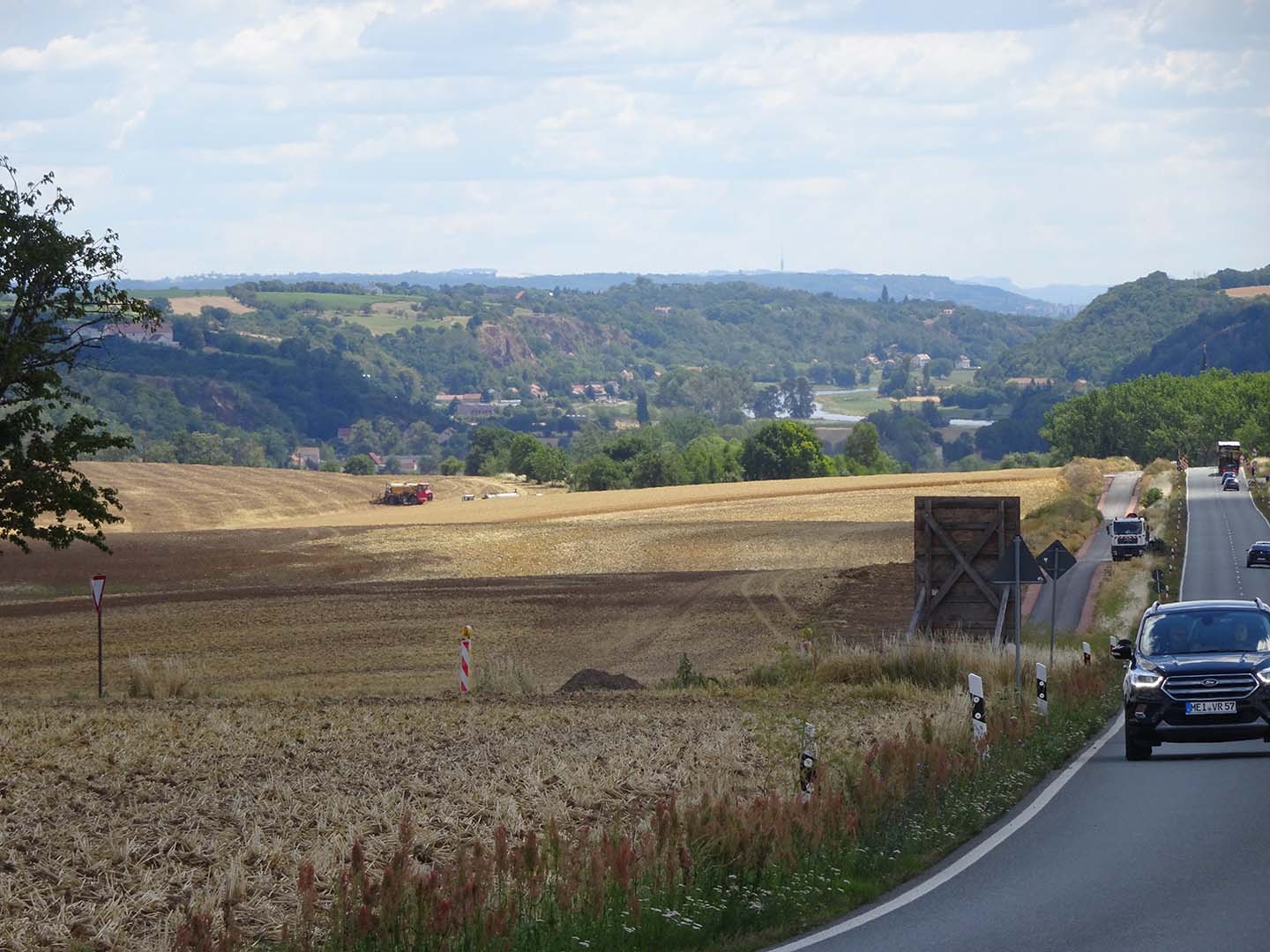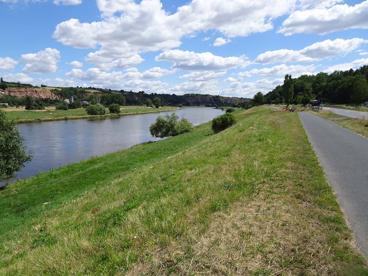 Auf dem letzten Campingplatz haben wir es bei gutem Wetter noch einen Tag länger ausgehalten als geplant. Gut erholt brachen wir heute gegen 8:00 Uhr auf. Es herrschte wieder Rückenwind und wir erreichten zunächst wieder über Bundesstraßen bereits gegen 13:30 Uhr Meißen. Gegen Ende der Etappe verläuft parallel zur durch die Enge des Elbetals oft schmalen Bundesstraße der Elberadweg, den wir hier erstmalig auf unserer Reise nutzten.